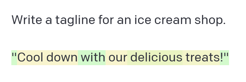 Now this is just the tip of the iceberg, but already yields some interesting results. In fact, it turns out that these models are extremely good at following instructions because of their predictive nature. Providing it with “Write a tagline for an ice cream shop” produces the output “Cool down with our delicious treats!”.