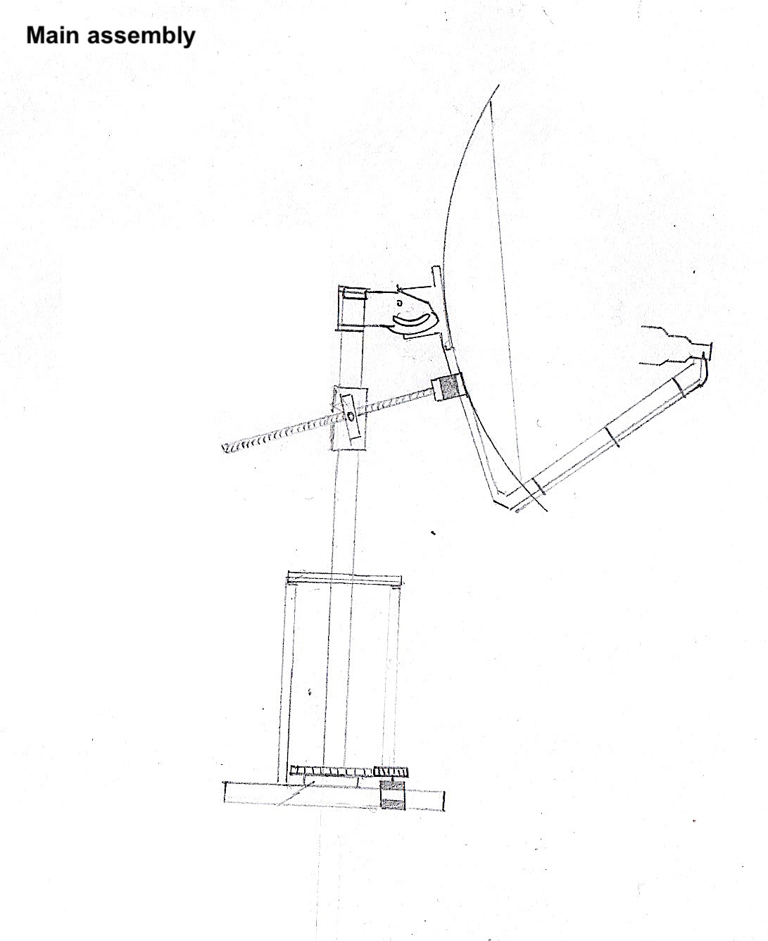 I used 3D printed parts I designed to build each axis to move the dish. What I built is essentially and alt-azimuth mount for the satellite dish.