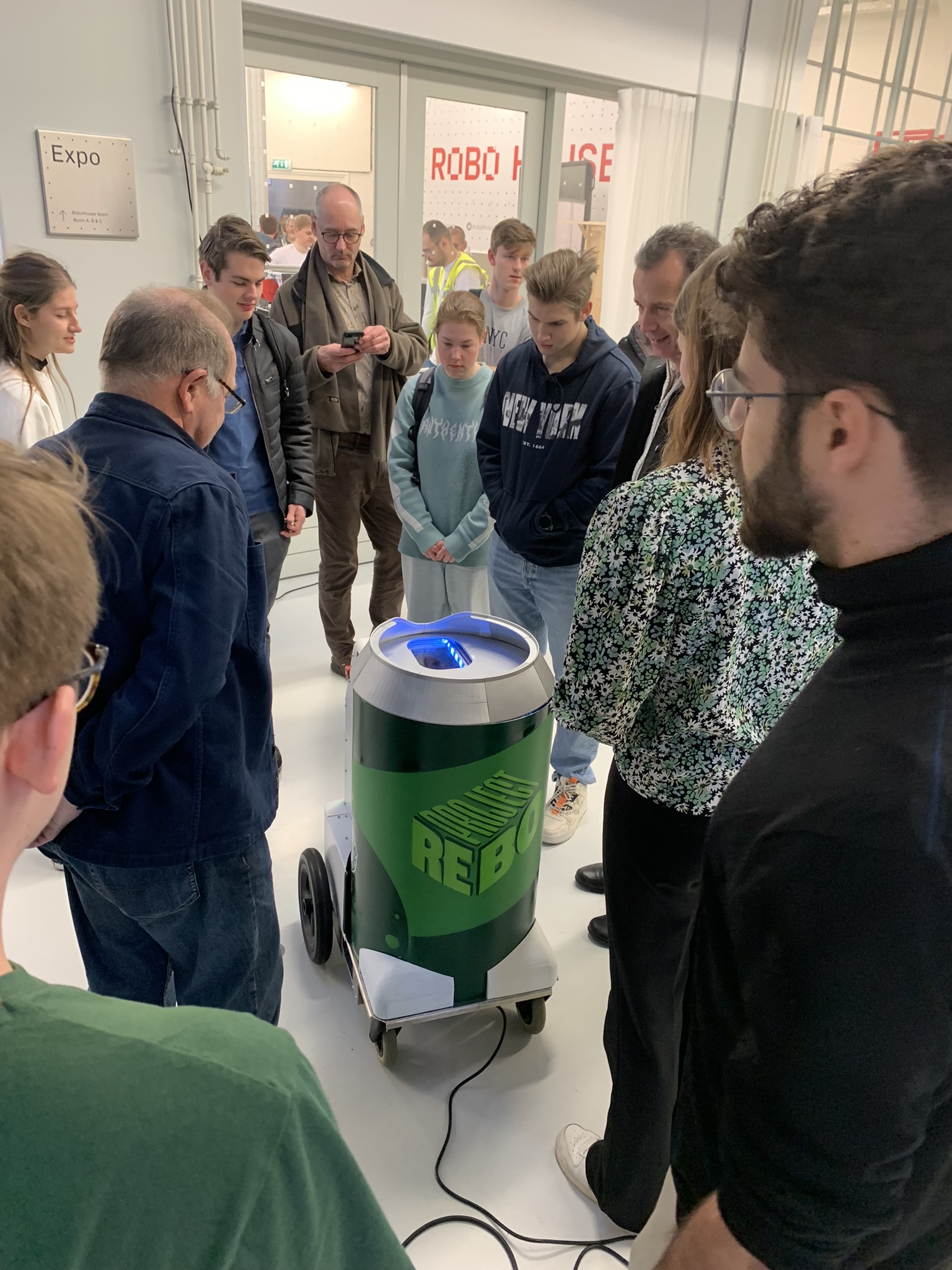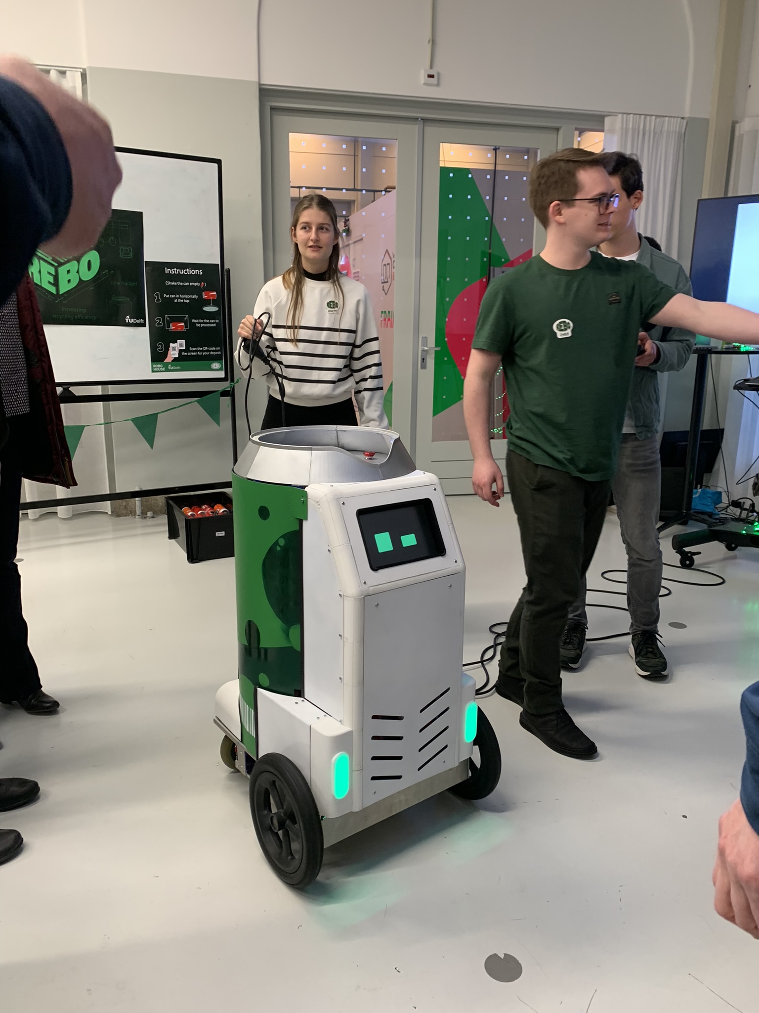 Project REBO is a robotic solution to beverage can collection and recycling, created as part of the Robotics Minor at TU Delft, and commissioned by TechTics. The robot designed to engage users with its interactive design, collect, crush, and store aluminum beverage cans while returning the Statiegeld (government deposit) to customers, incentivizing recycling on the spot.